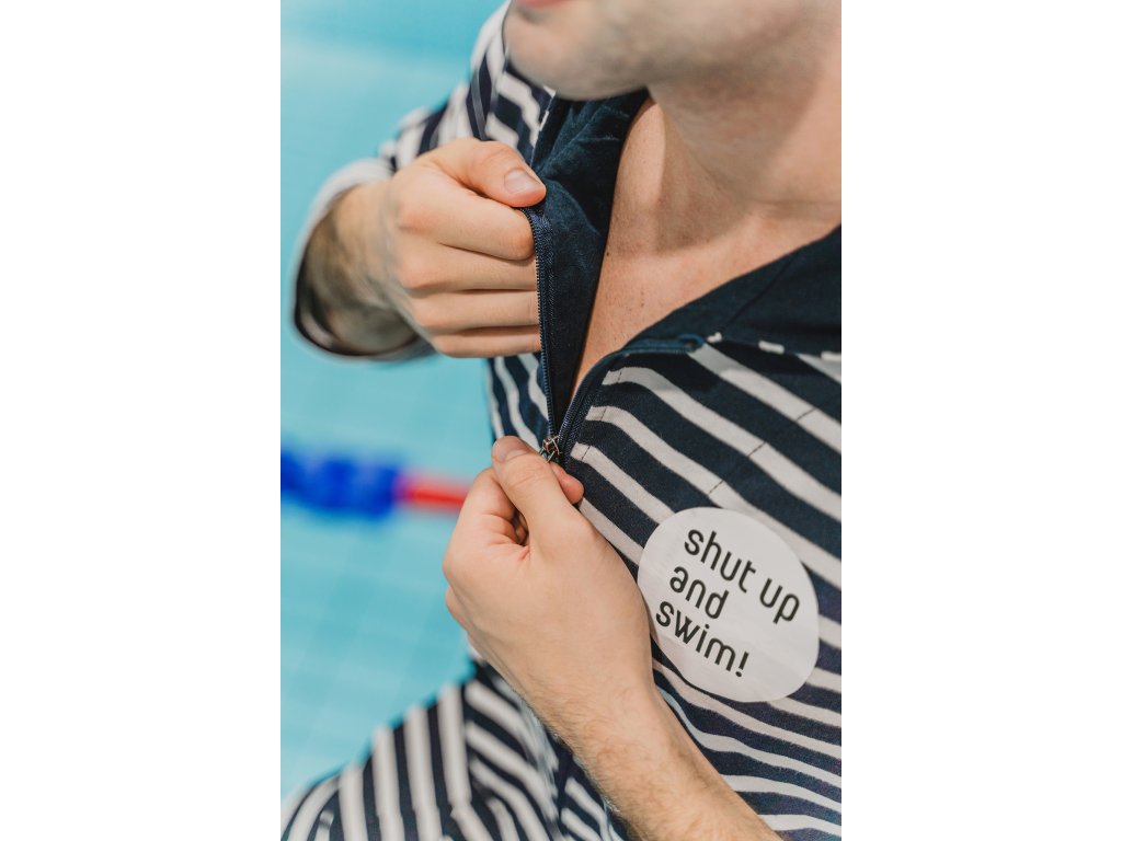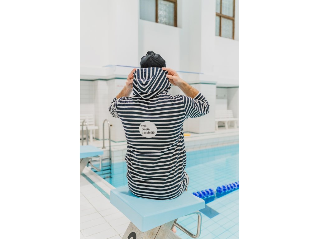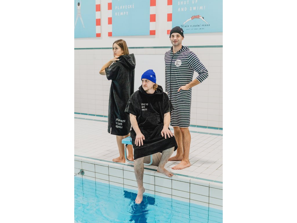 Stylové pončo ze 100% bavlny se zipem a kapucí s logem Shut up and swim! Ušito v České republice (zlaté české ručičky 🙌)