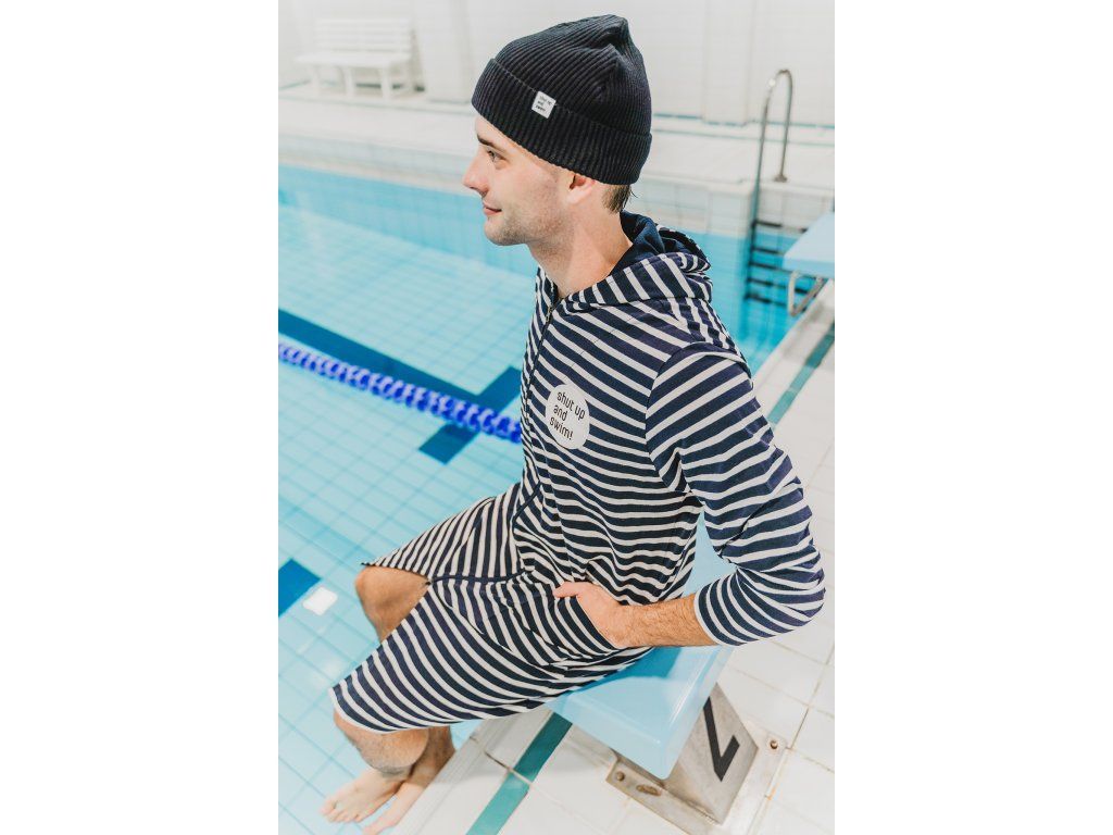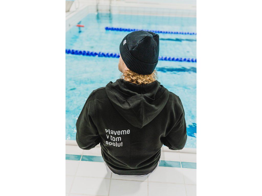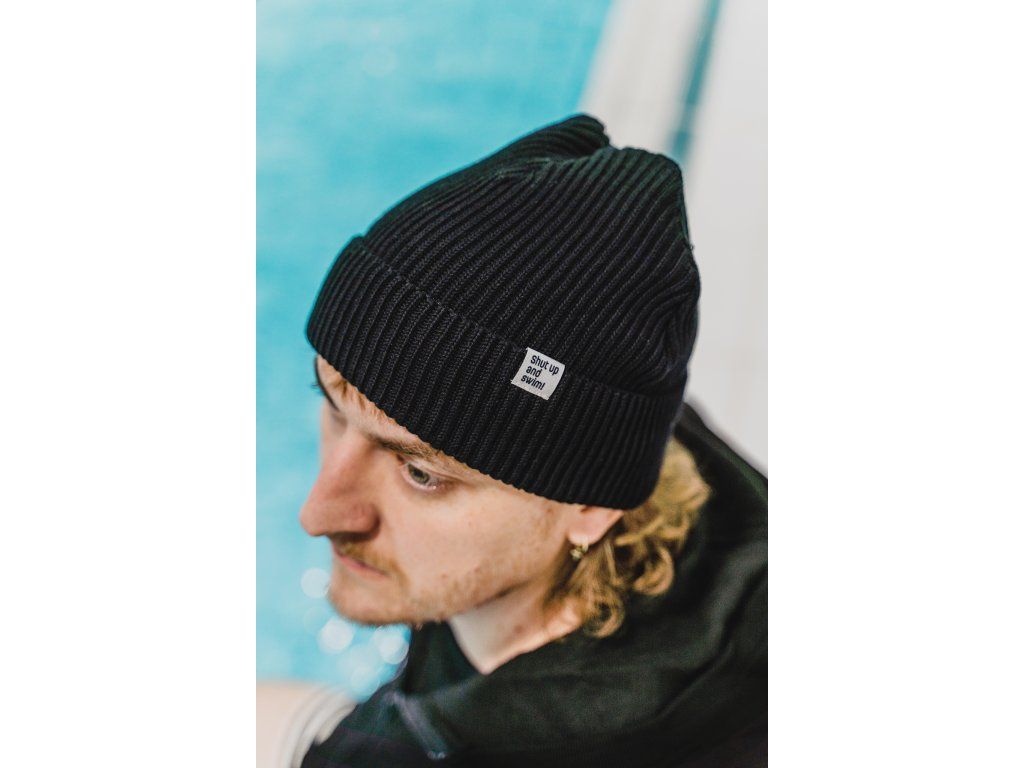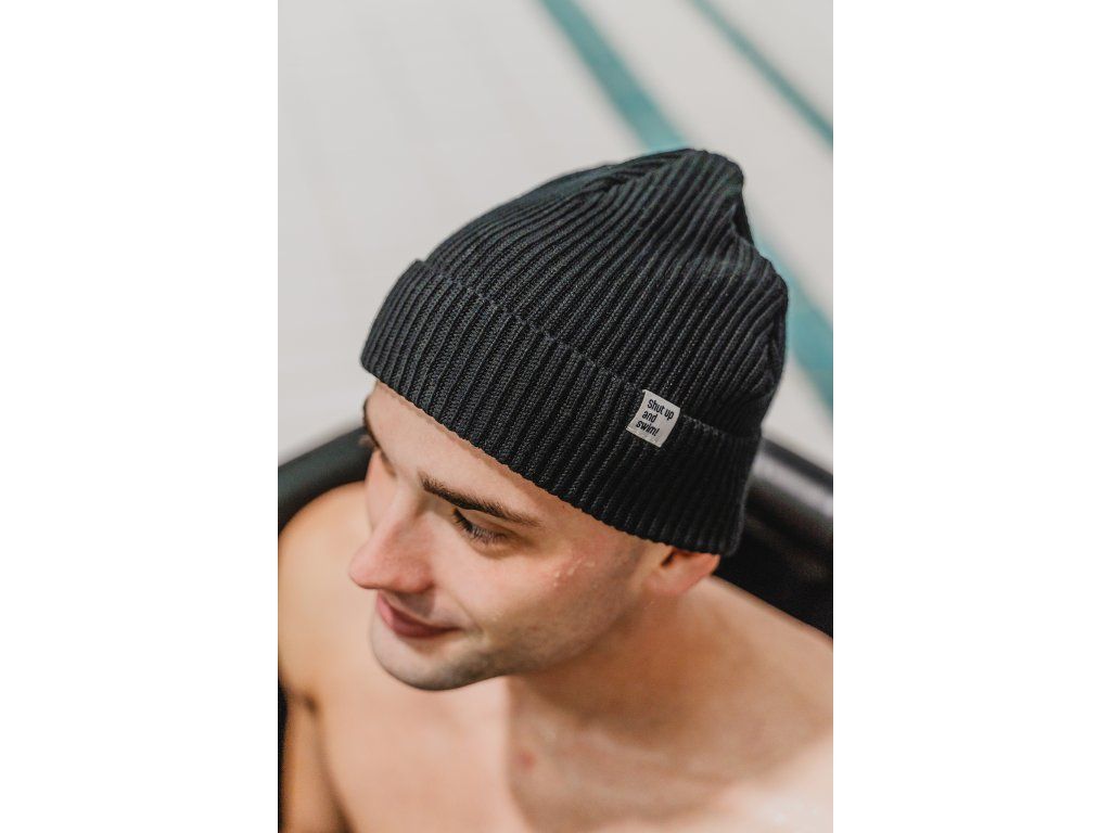 Bavlněná zimní čepice černá se štítkem Shut up and swim