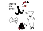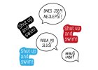 Samolepkový arch A5 s logem Shut up and swim a originálními hesly vyroben v České republice