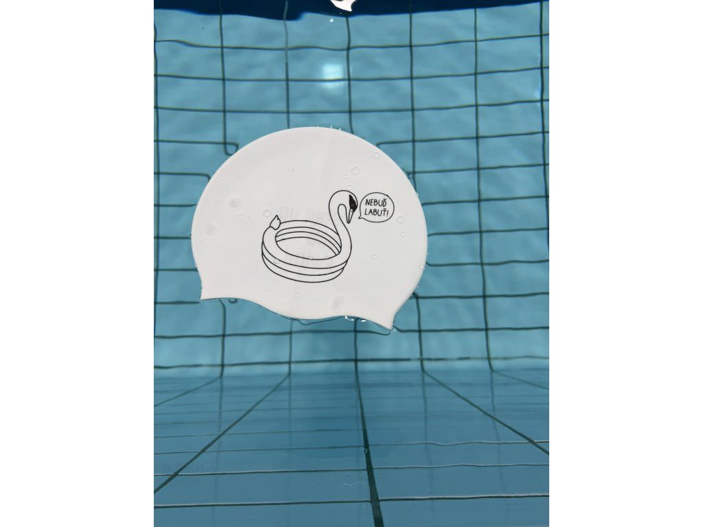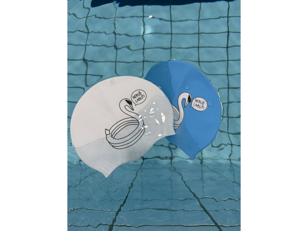 Plavecká čepice dětský motiv ,,Nebuď labuť!" bílá