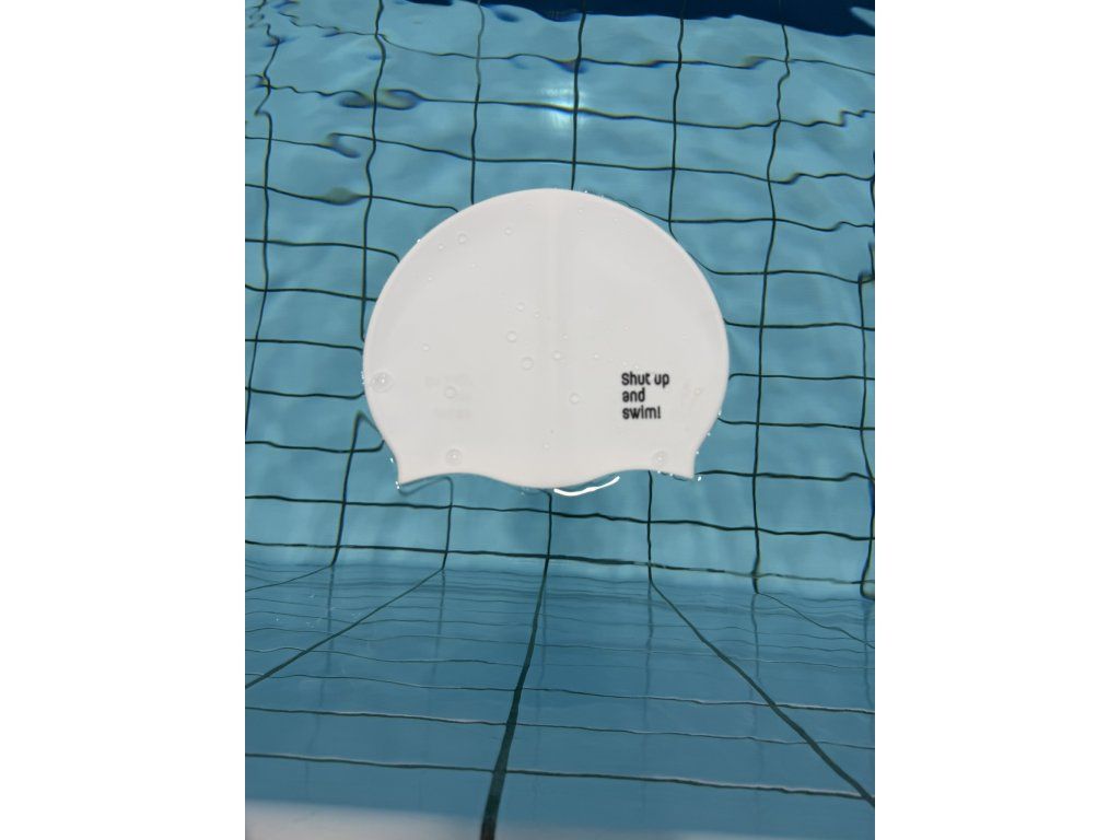 Silikonová plavecká čepice: z obou stran logo Shut up and swim!