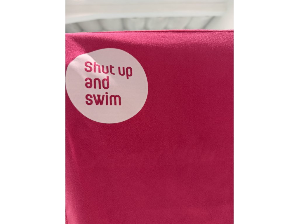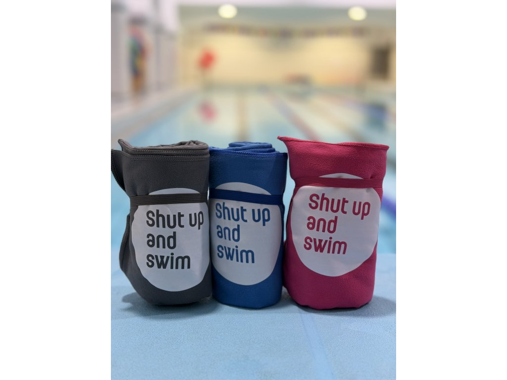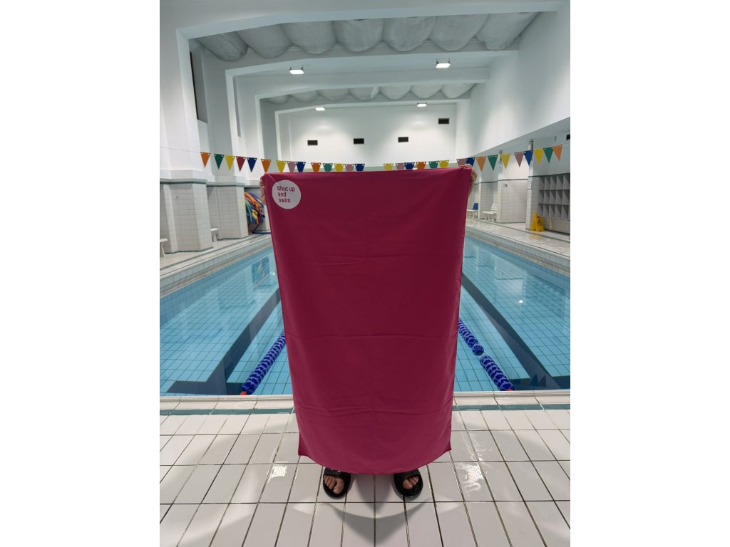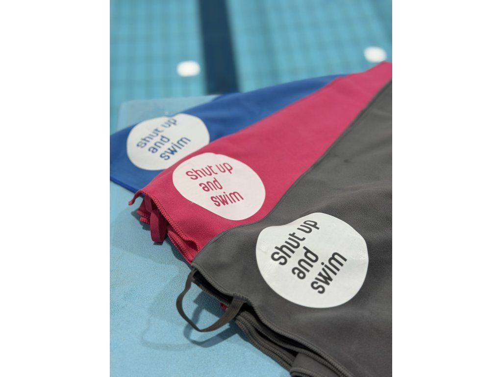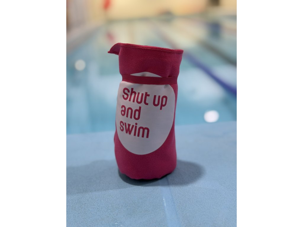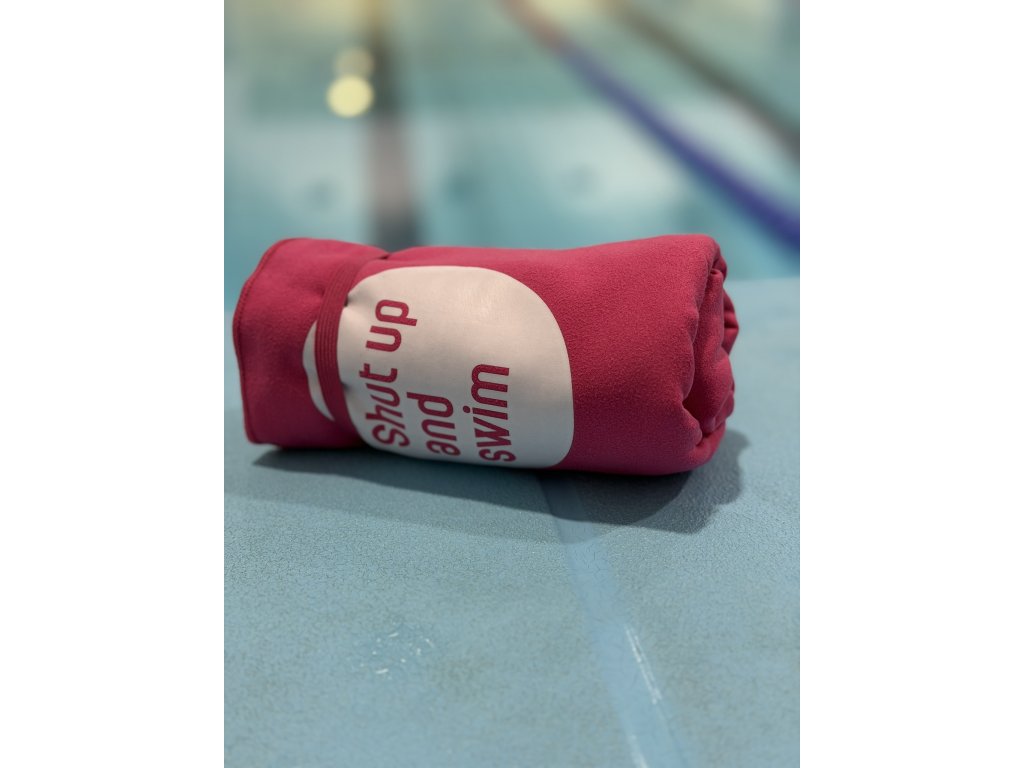 Lehký a rychleschnoucí ručník růžový z mikrovlákna s logem Shut up and swim, potištěno v České republice