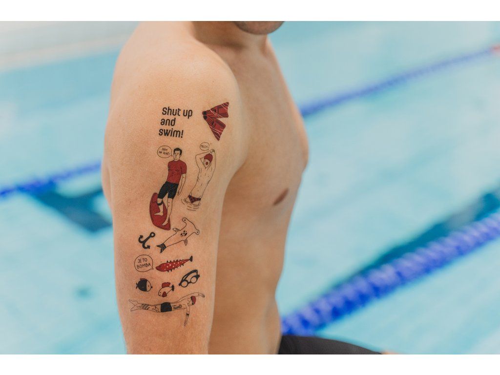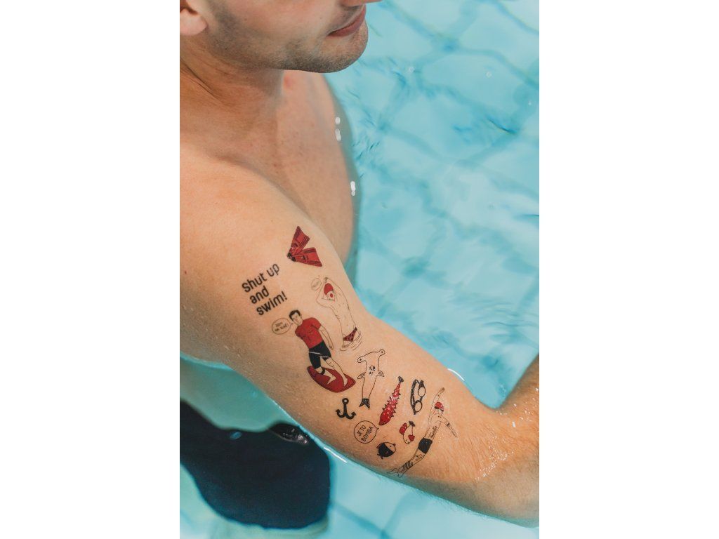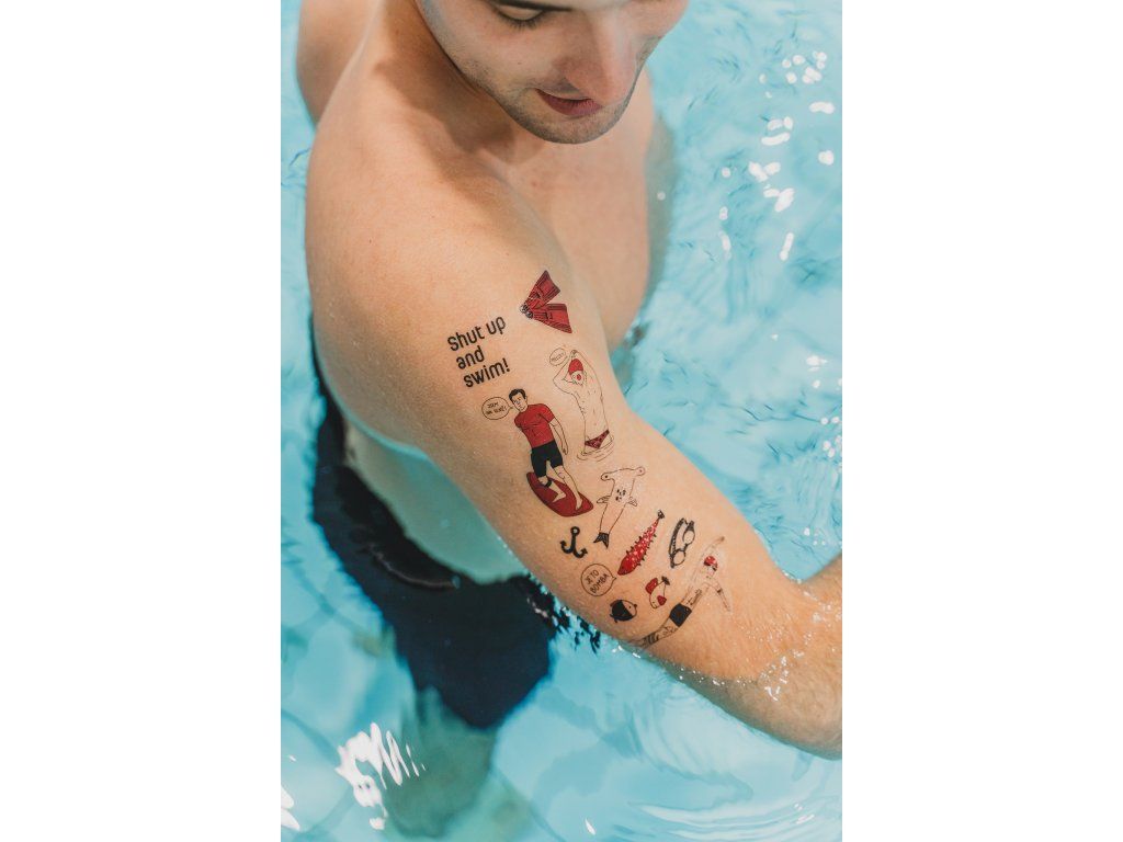 Plavecká čepice dětský motiv ,,Nebuď labuť!" modrá
