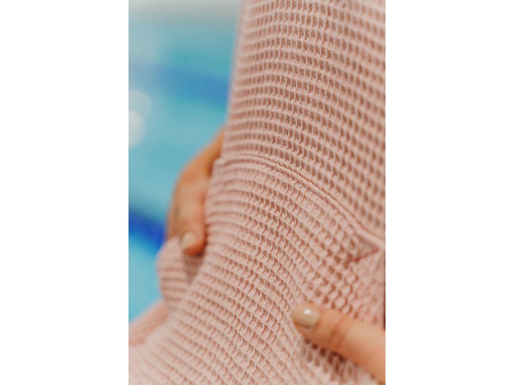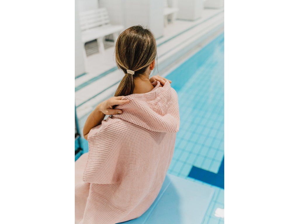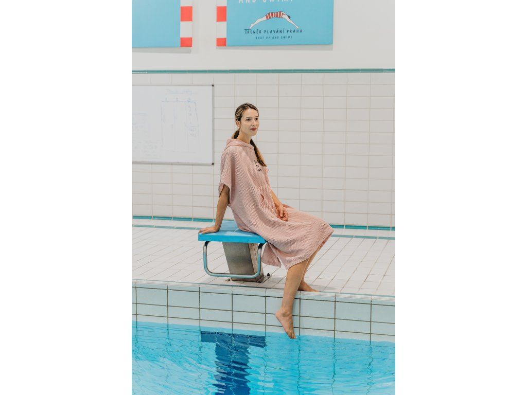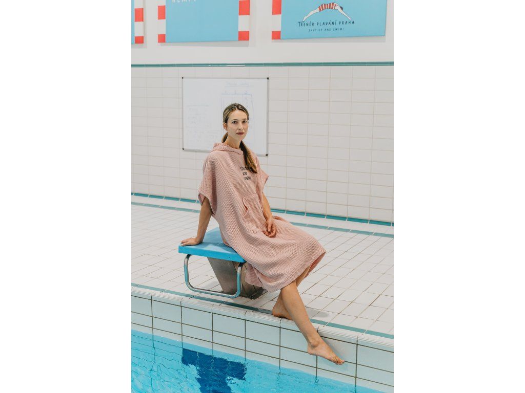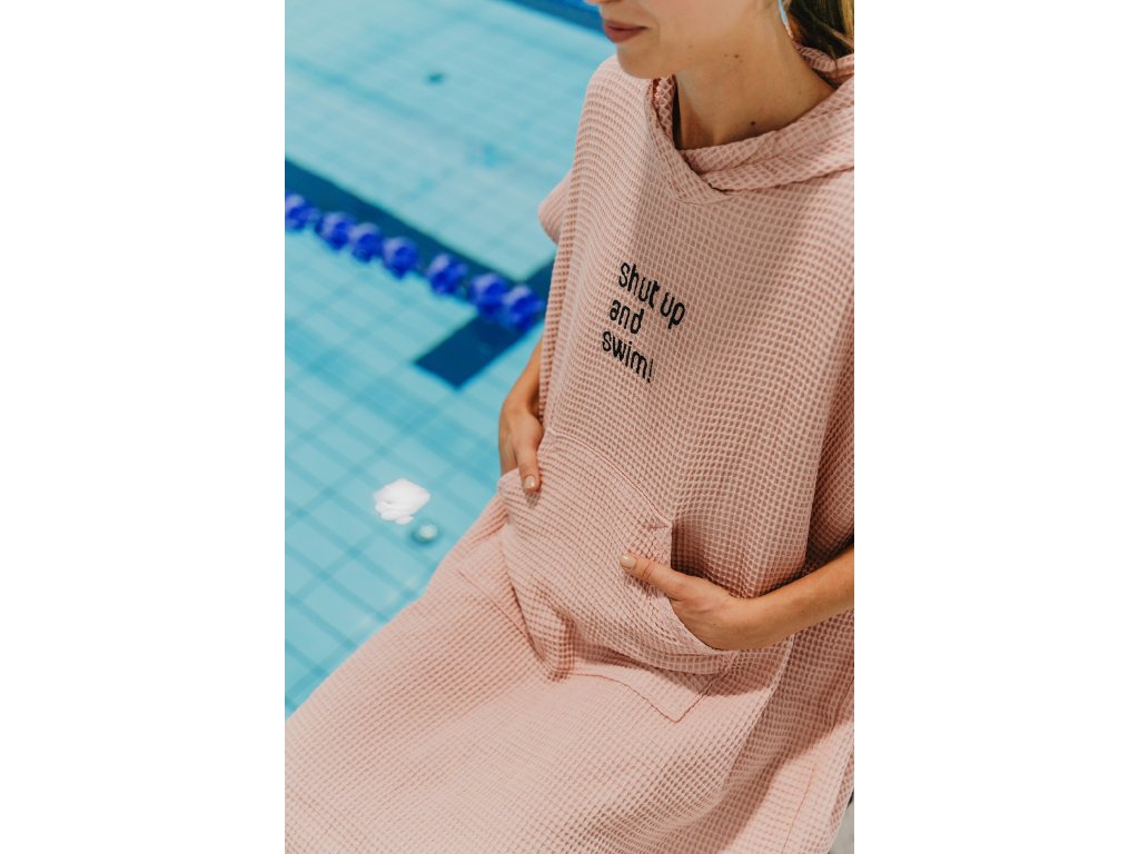 Vaflové růžové bavlněné pončo s bílou výšivkou Shut up and swim, ušito v České republice (zlaté české ručičky 🙌)